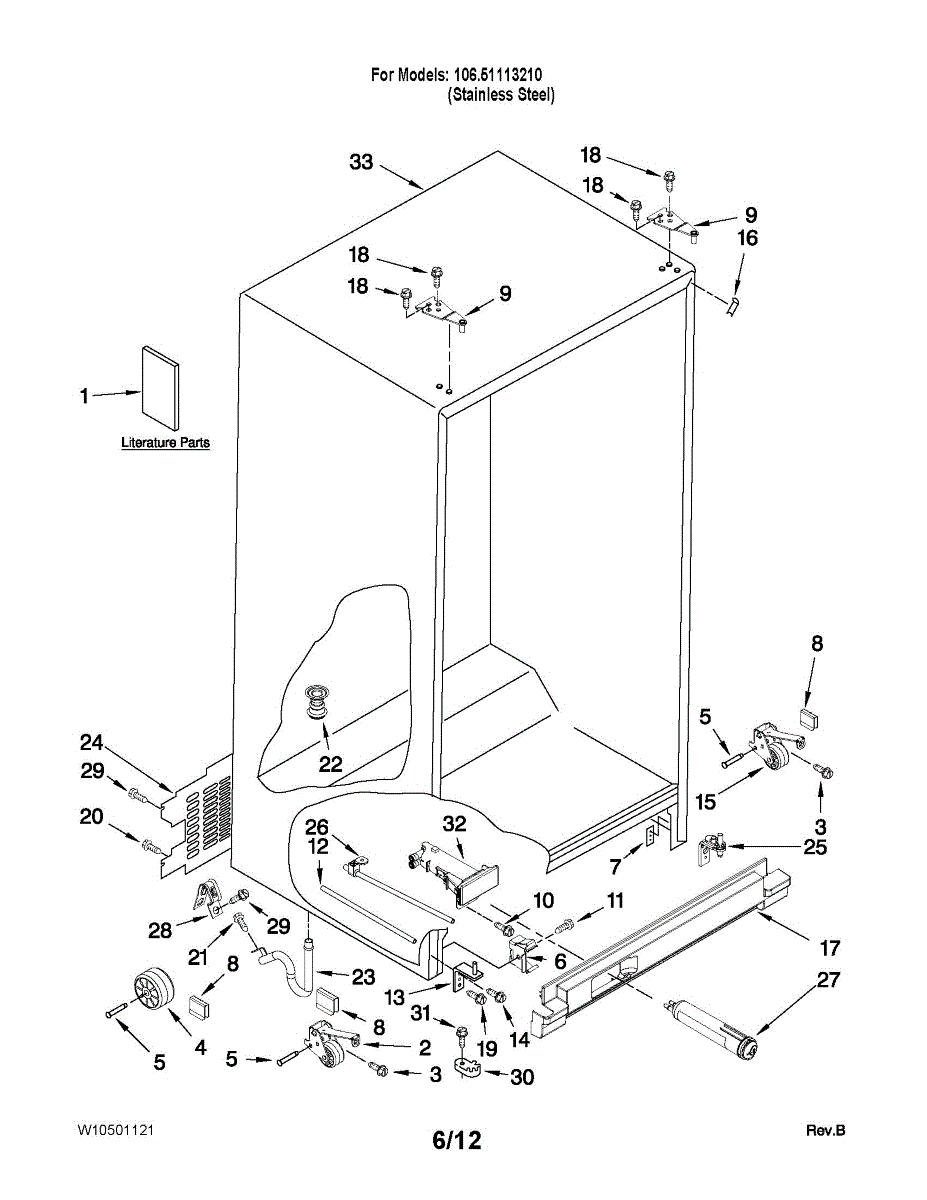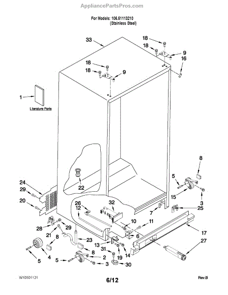 Causes of a bad Lower Refrigerator Door Hinge and Closure Cam Assembly can include wear and tear from normal use, improper door alignment or installation, excessive force when opening or closing the door, or corrosion due to moisture and other environmental factors.