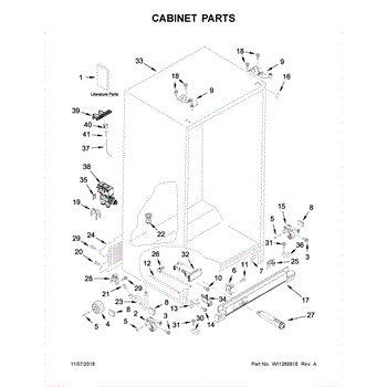 The Water Filter Housing is an OEM component for Whirlpool refrigerators. Located inside the cabinet, usually underneath the drink dispenser spout, this plastic housing contains the replaceable water filter cartridge.