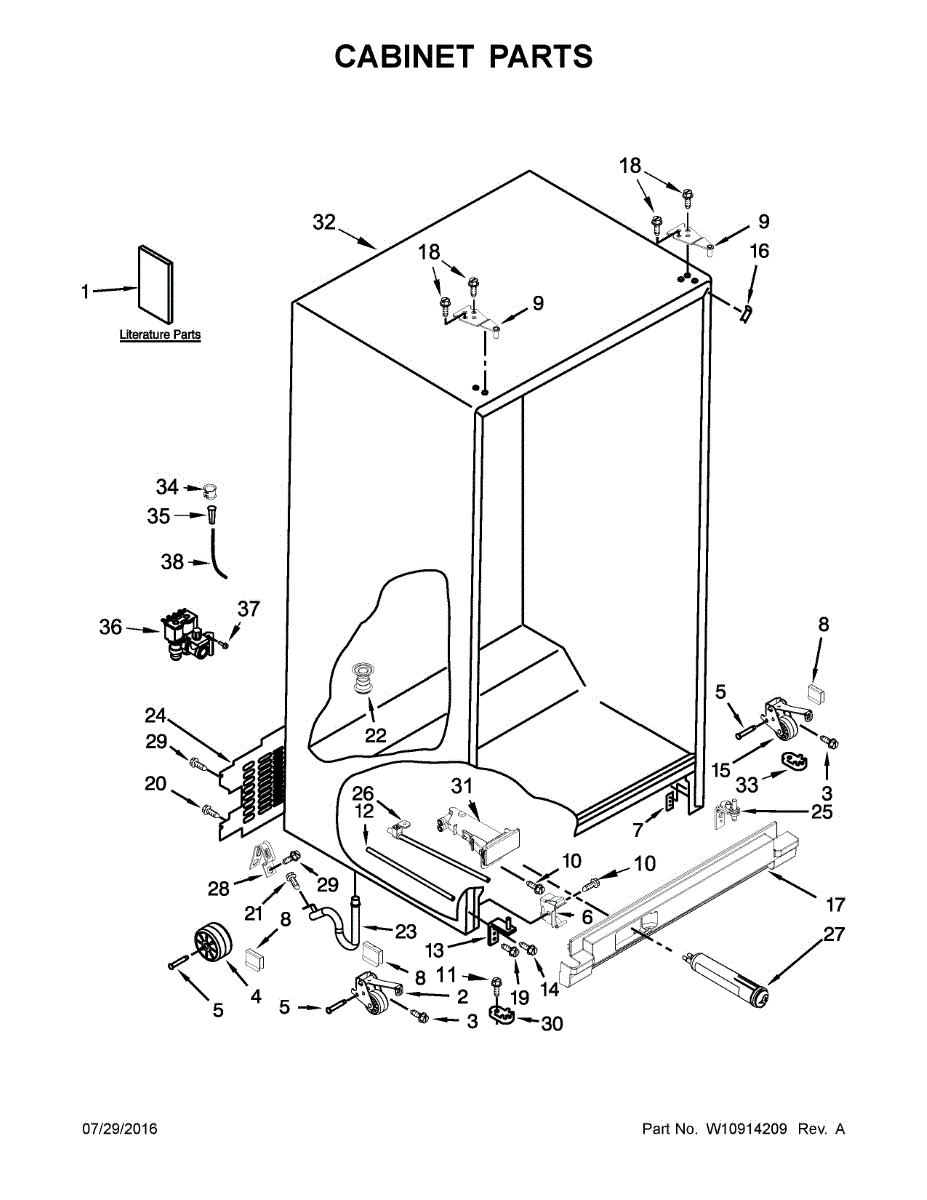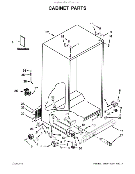 Cabinet roller axle supports refrigerator wheels for smooth movement. Replace if rollers wobble or fridge is hard to move. Verify fit with your model.