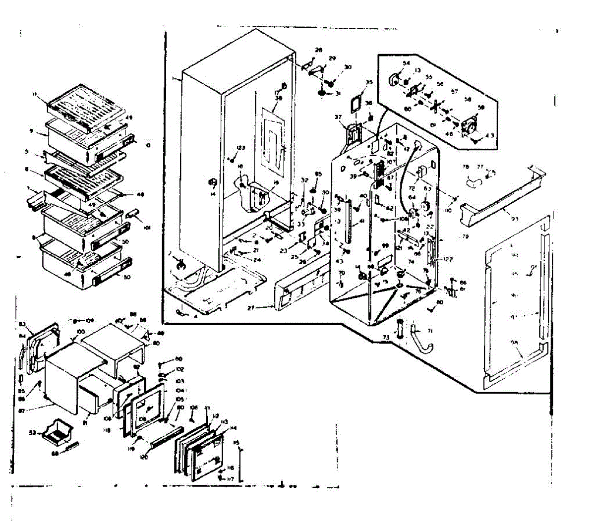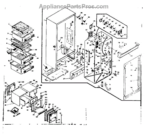 Parts for Kenmore 106.6651623 (1066651623, 106 6651623): Cabinet Parts