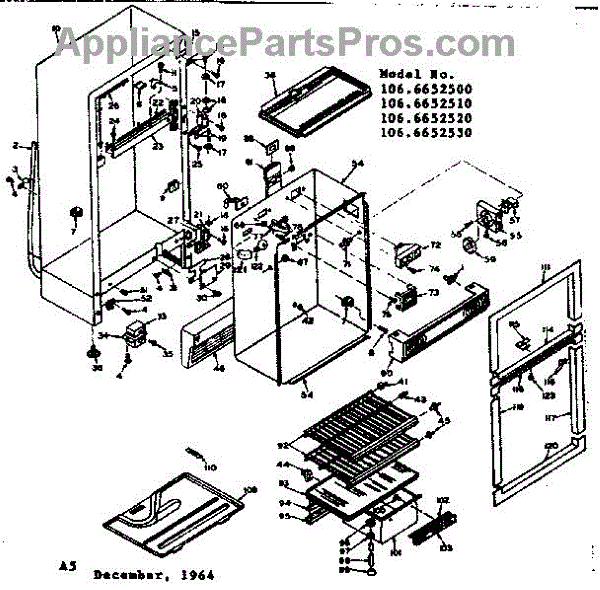 Parts for Kenmore 106.6652510 (1066652510, 106 6652510): Cabinet Parts