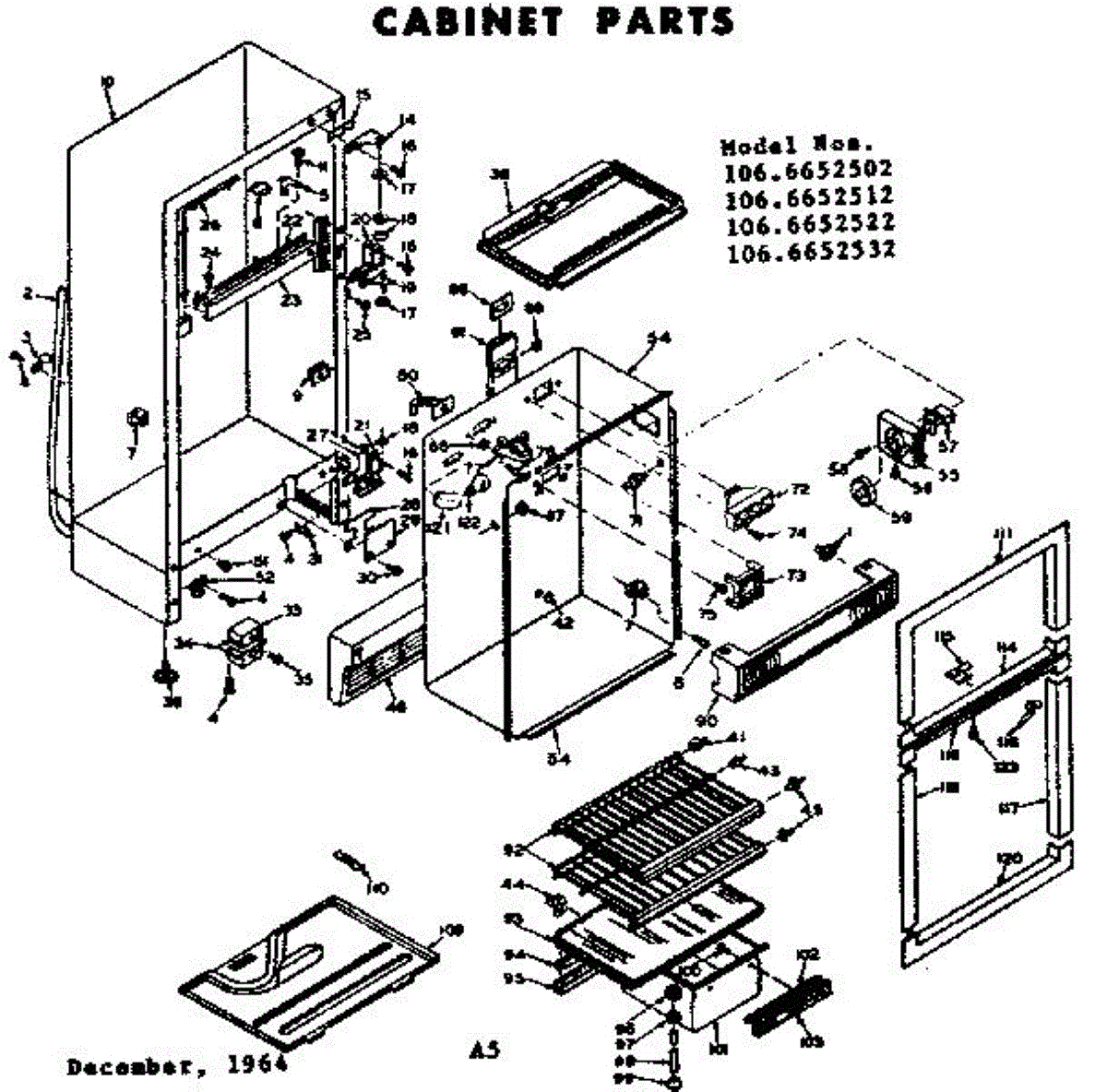 Parts for Kenmore 106.6652512 (1066652512, 106 6652512): Cabinet Parts