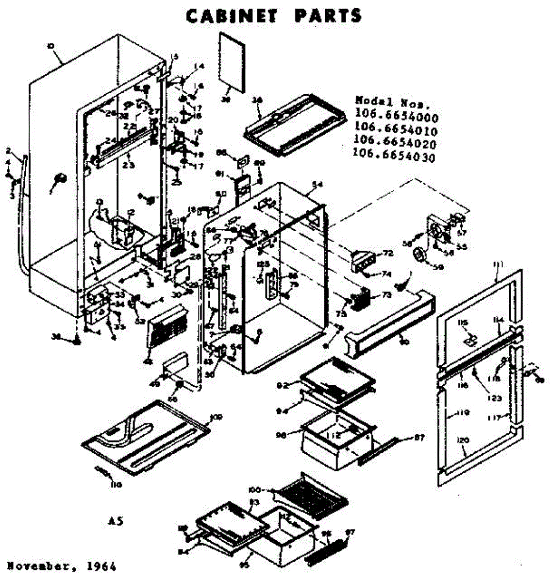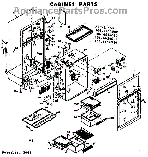 Parts for Kenmore 106.6654000 (1066654000, 106 6654000): Cabinet Parts