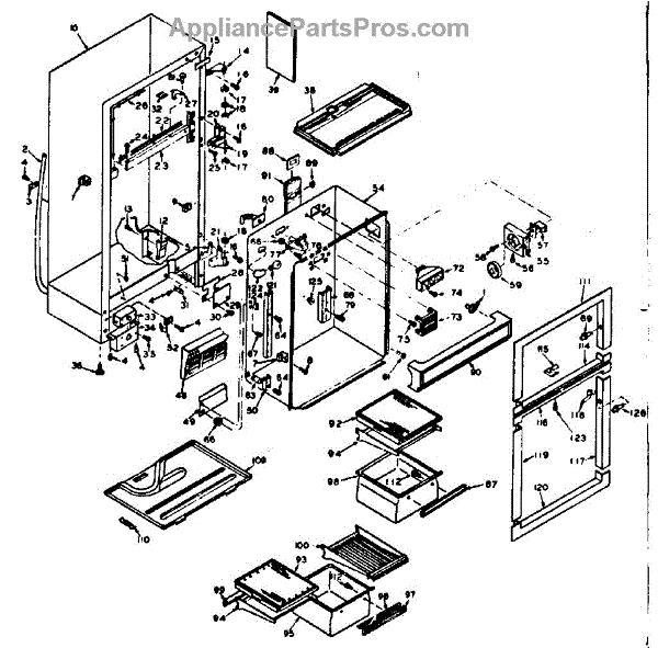 Parts for Kenmore 106.6654120 (1066654120, 106 6654120): Cabinet Parts