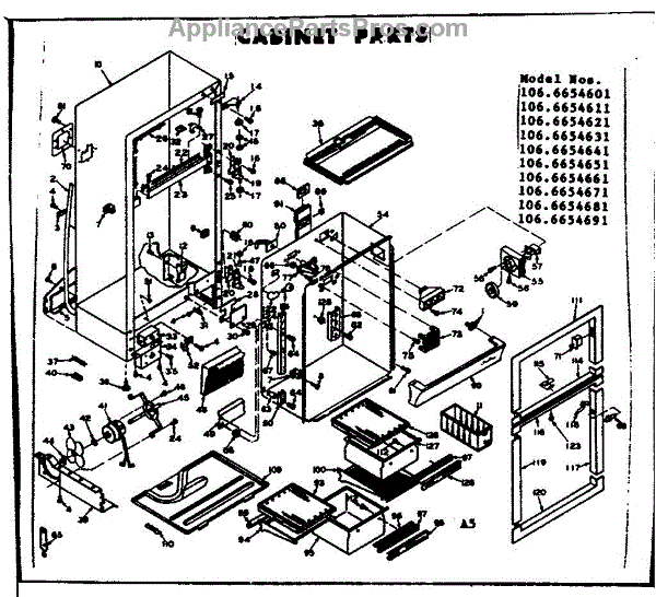 Parts for Kenmore 106.6654611 (1066654611, 106 6654611): Cabinet Parts