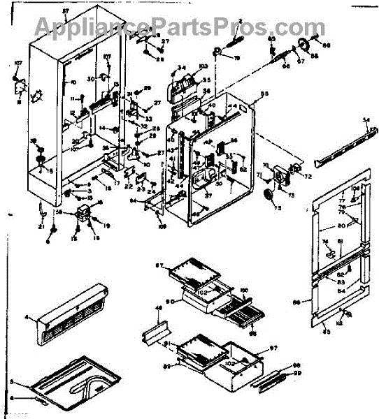 Parts for Kenmore 106.6655121 (1066655121, 106 6655121): Cabinet Parts