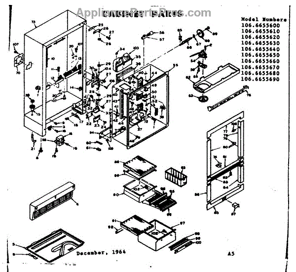 Parts for Kenmore 106.6655650 (1066655650, 106 6655650): Cabinet Parts