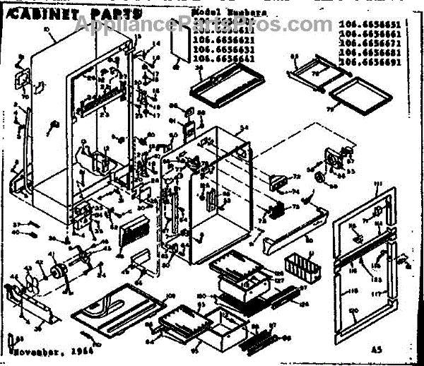 Parts for Kenmore 106.6656611 (1066656611, 106 6656611): Cabinet Parts
