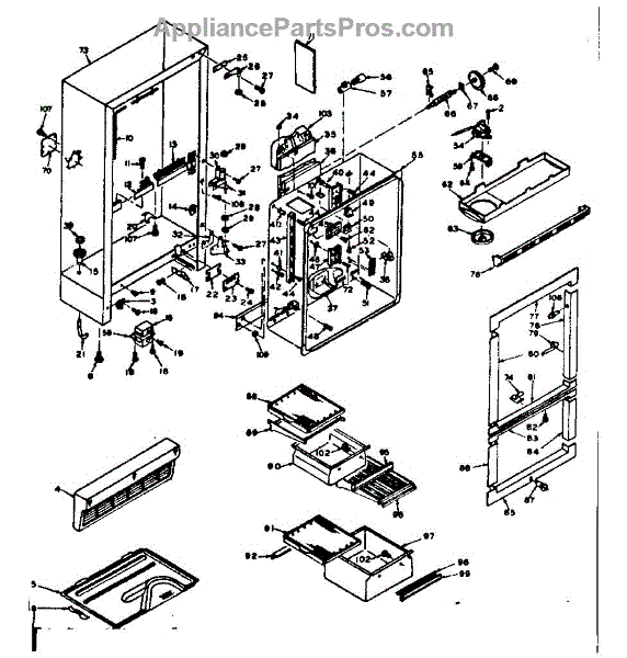 Parts for Kenmore 106.6657020 (1066657020, 106 6657020): Cabinet Parts