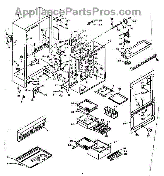Parts for Kenmore 106.6657613 (1066657613, 106 6657613): Cabinet Parts