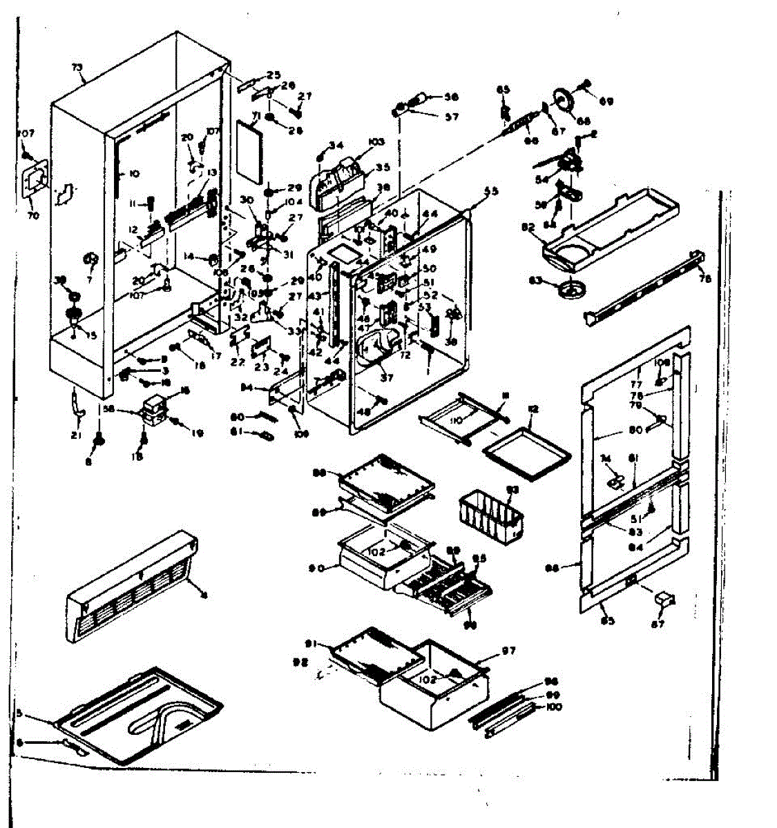 Parts for Kenmore 106.6657642 (1066657642, 106 6657642): Cabinet Parts