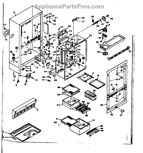 Parts for Kenmore 106.6657692 (1066657692, 106 6657692): Cabinet Parts