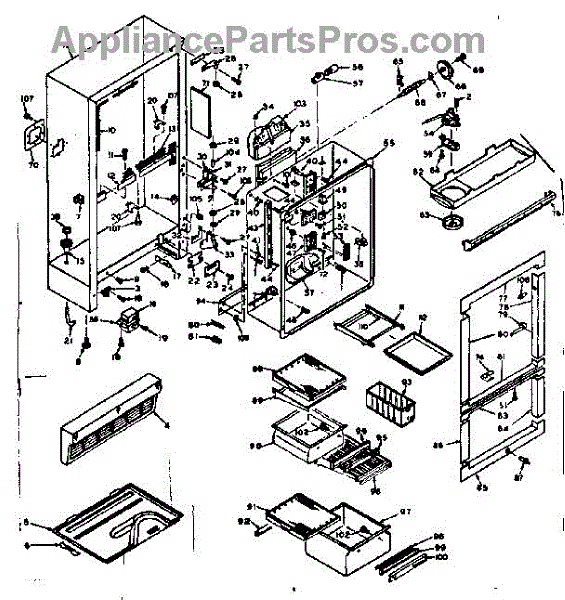 Parts for Kenmore 106.6657694 (1066657694, 106 6657694): Cabinet Parts