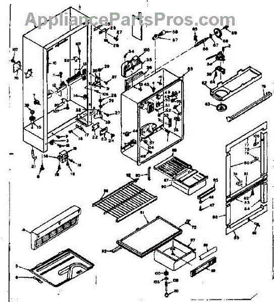 Parts for Kenmore 106.6658121 (1066658121, 106 6658121): Cabinet Parts