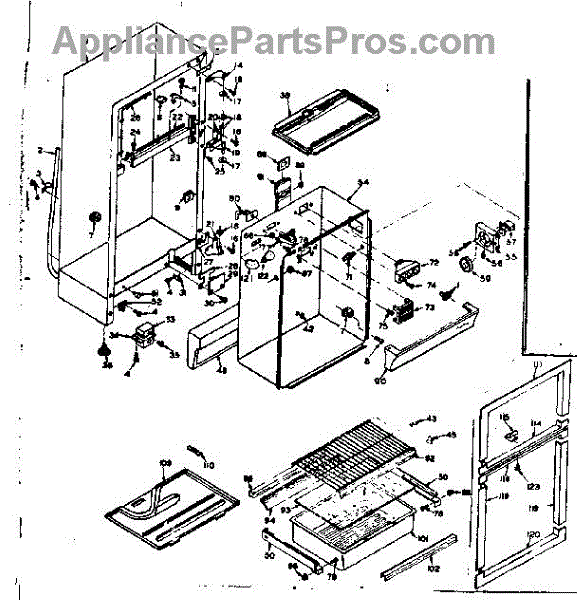 Parts for Kenmore 106.6662210 (1066662210, 106 6662210): Cabinet Parts