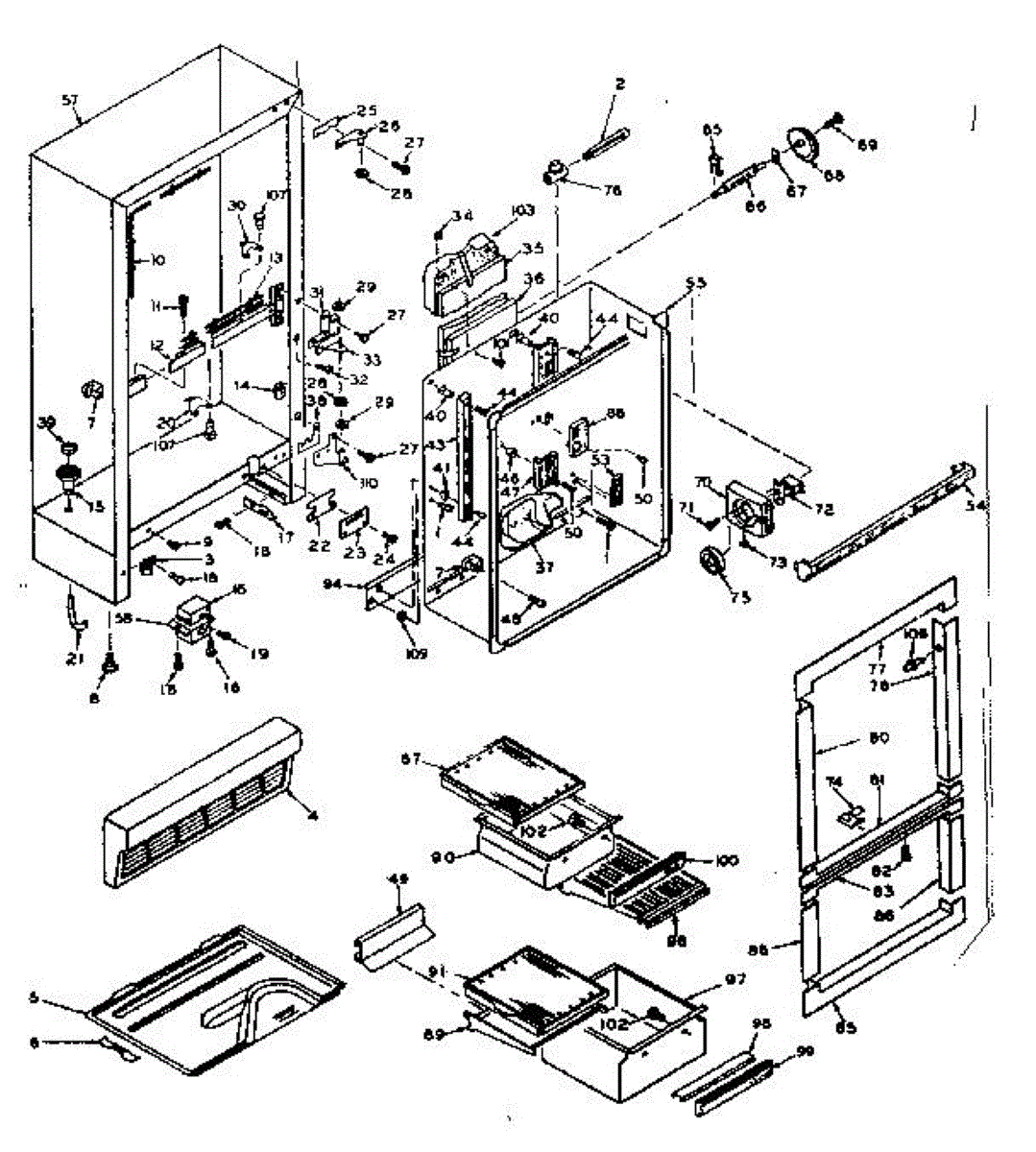 Parts for Kenmore 106.6665021 (1066665021, 106 6665021): Cabinet Parts