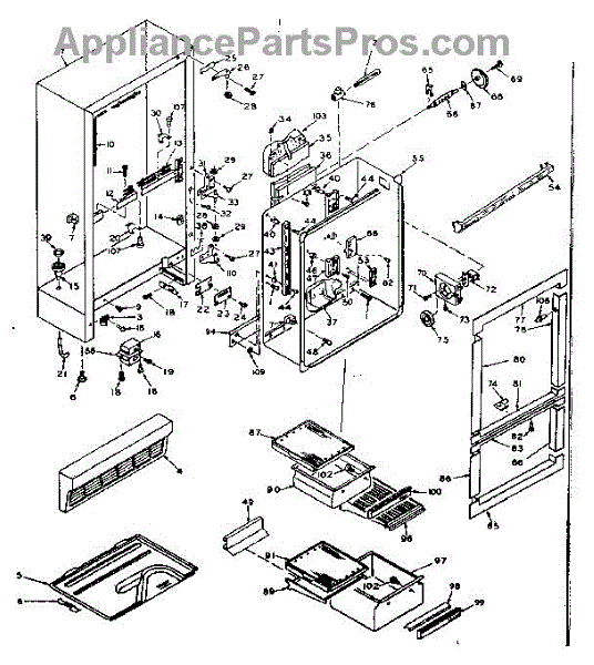Parts for Kenmore 106.6665030 (1066665030, 106 6665030): Cabinet Parts