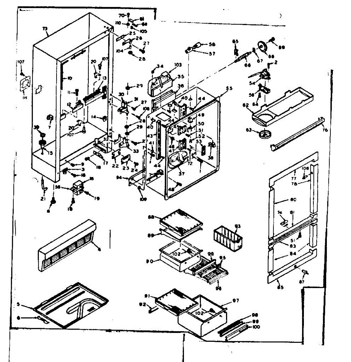 Parts for Kenmore 106.6665630 (1066665630, 106 6665630): Cabinet Parts