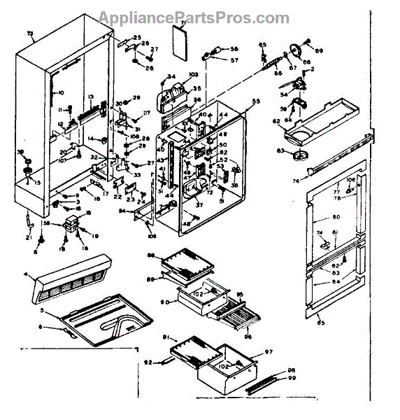 Parts for Kenmore 106.6667020 (1066667020, 106 6667020): Cabinet Parts