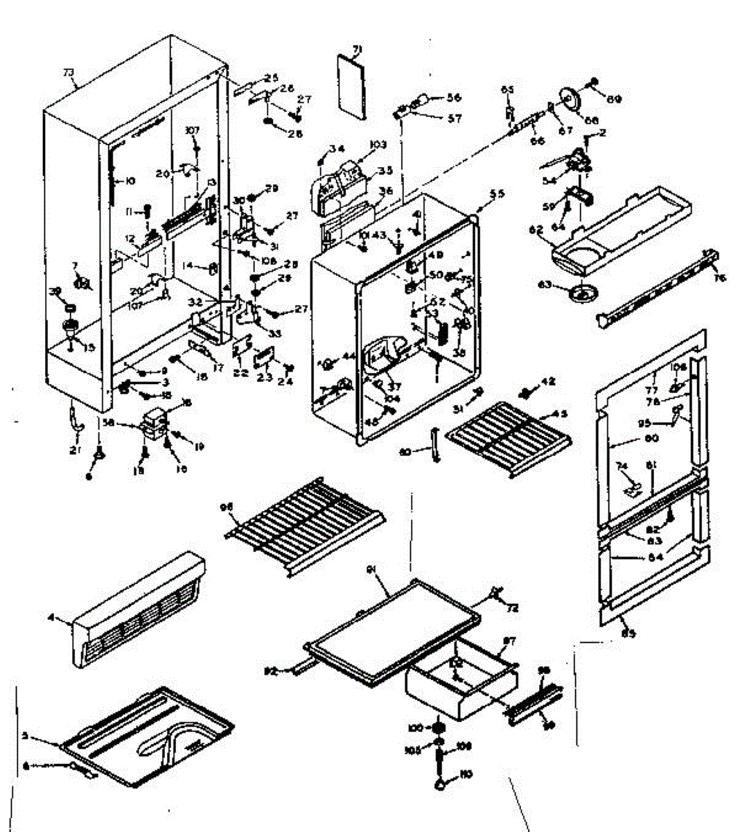 Parts for Kenmore 106.6667201 (1066667201, 106 6667201): Cabinet Parts