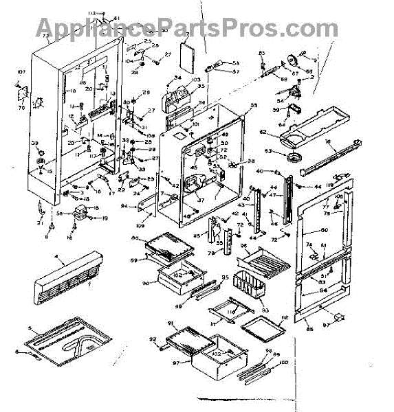 Parts for Kenmore 106.6667823 (1066667823, 106 6667823): Cabinet Parts