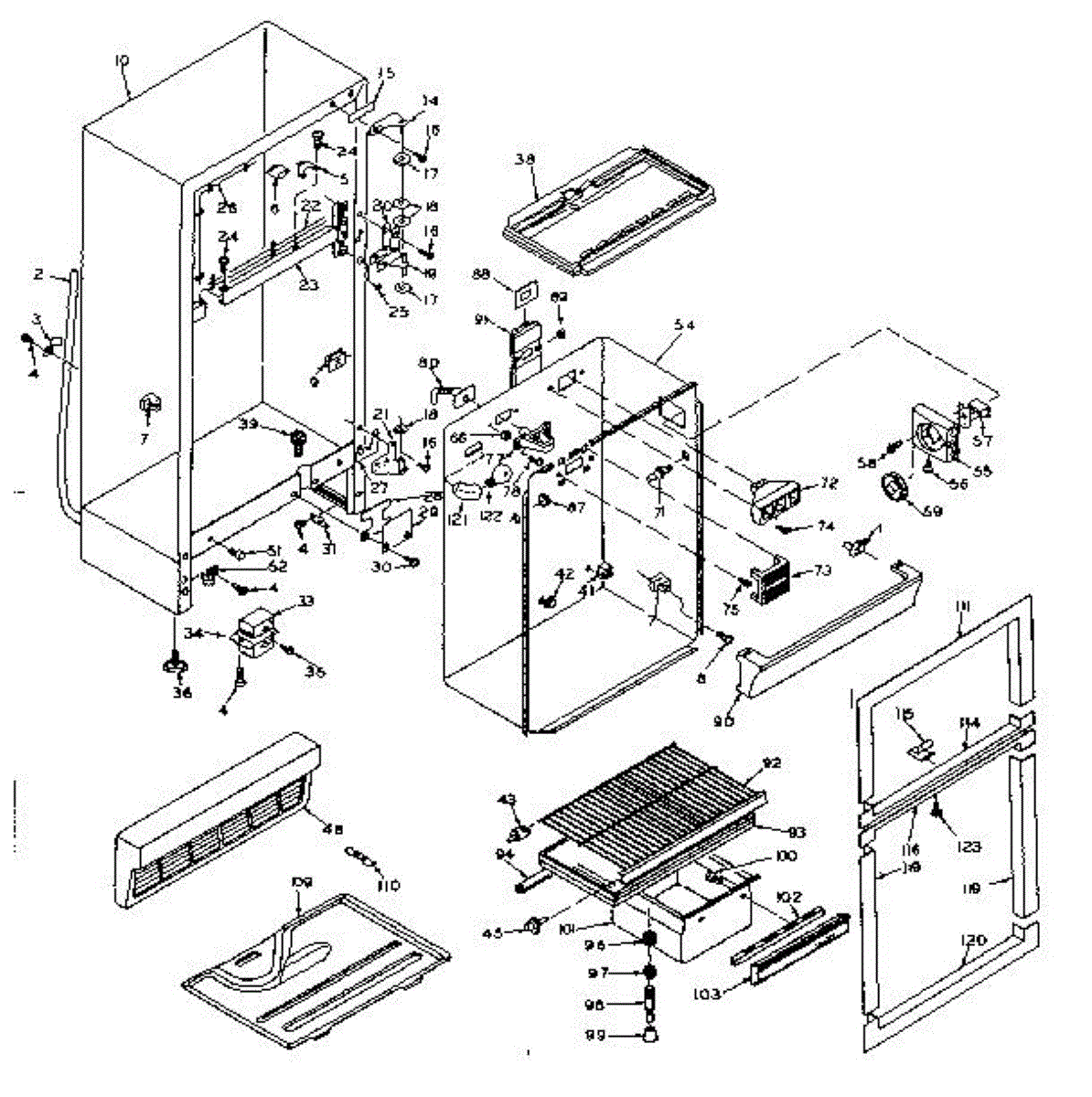 Parts for Kenmore 106.6672211 (1066672211, 106 6672211): Cabinet Parts