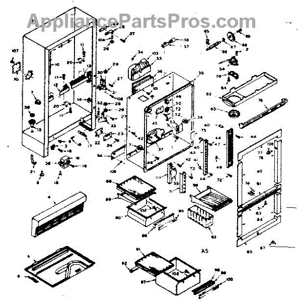 Parts for Kenmore 106.6675621 (1066675621, 106 6675621): Cabinet Parts