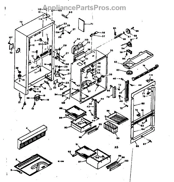 Parts for Kenmore 106.6677632 (1066677632, 106 6677632): Cabinet Parts