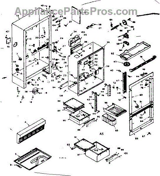 Parts for Kenmore 106.6678631 (1066678631, 106 6678631): Cabinet Parts