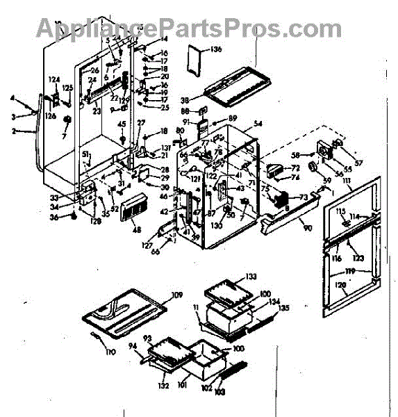 Parts for Kenmore 106.6684400 (1066684400, 106 6684400): Cabinet Parts