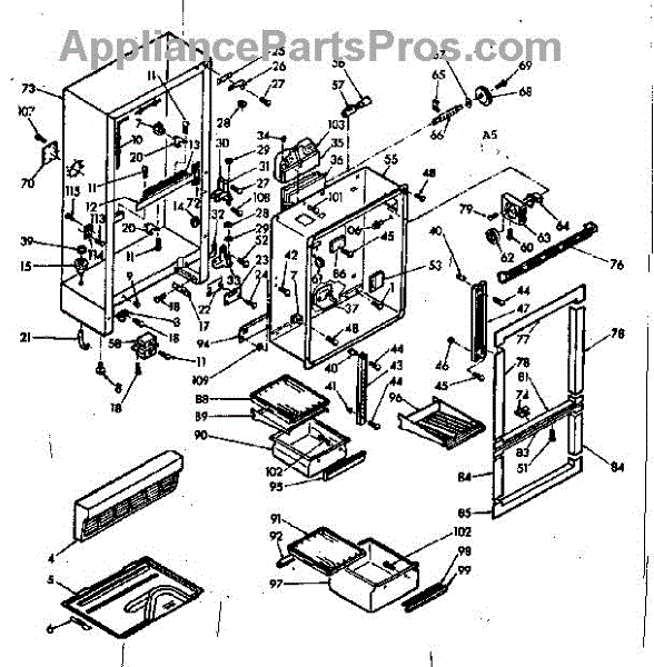 Parts for Kenmore 106.6685410 (1066685410, 106 6685410): Cabinet Parts
