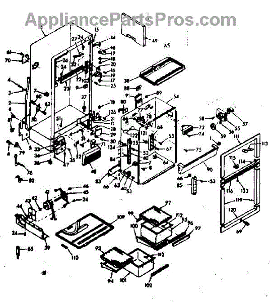 Parts for Kenmore 106.6686201 (1066686201, 106 6686201): Cabinet Parts