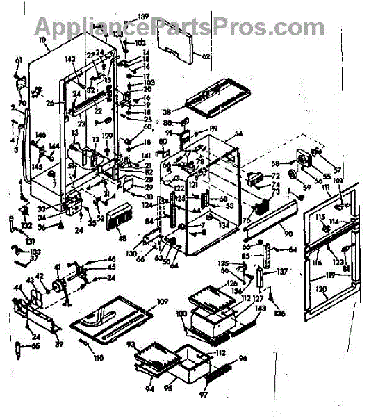 Parts for Kenmore 106.6686740 (1066686740, 106 6686740): Cabinet Parts