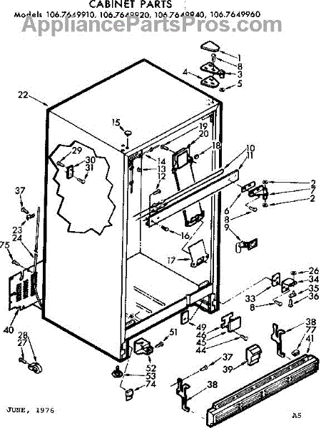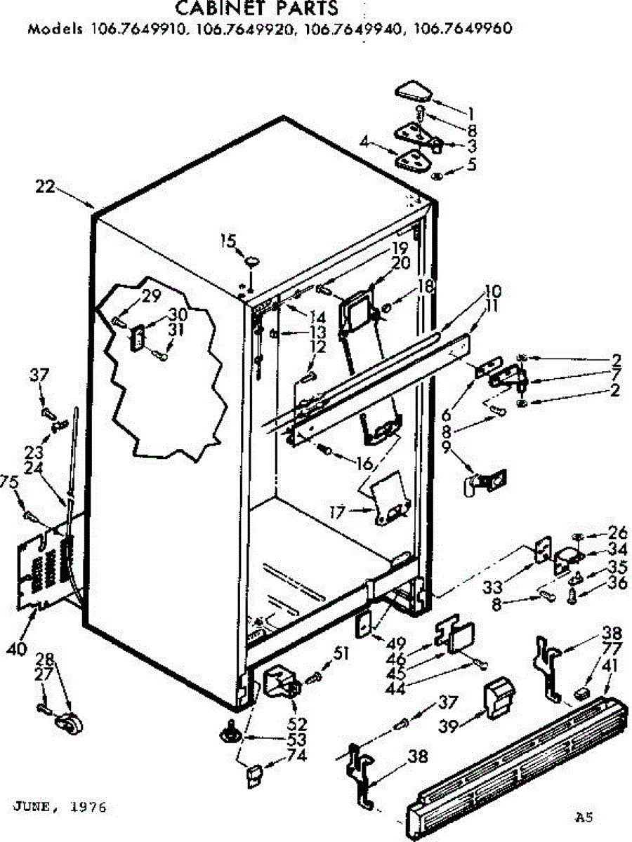 Parts for Kenmore 106.7649910 (1067649910, 106 7649910): Cabinet Parts