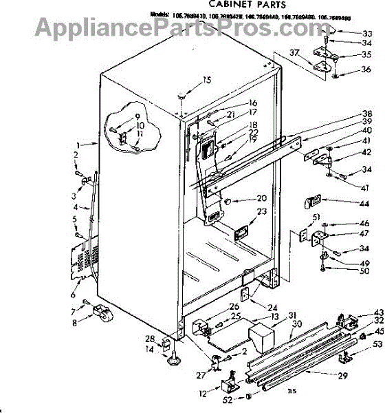 Parts for Kenmore 106.7689410 (1067689410, 106 7689410): Cabinet Parts