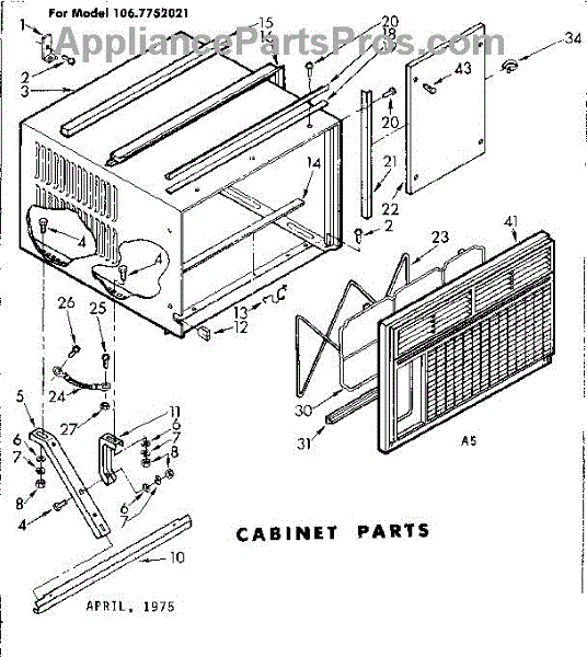 Parts for Kenmore 106.7752021 (1067752021, 106 7752021): Cabinet Parts
