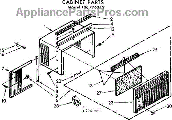 Parts for Kenmore 106.7760451 (1067760451, 106 7760451): Cabinet Parts