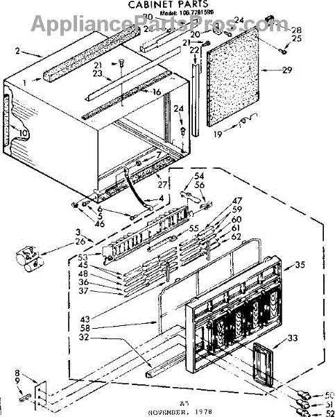 Parts for Kenmore 106.7791590 (1067791590, 106 7791590): Cabinet Parts