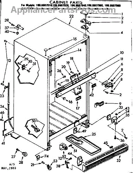 Parts for Kenmore 106.8607980 (1068607980, 106 8607980): Cabinet Parts