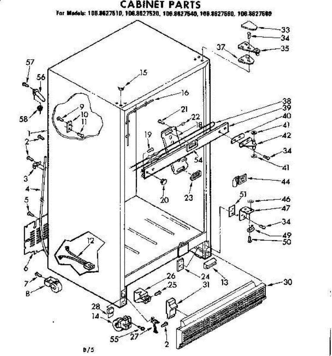 This cabinet roller assembly supports the refrigerator at the base and lets you roll the unit forward for cleaning or service. Replace a cracked or seized roller to restore smooth movement and a stable, level stance. What it does: