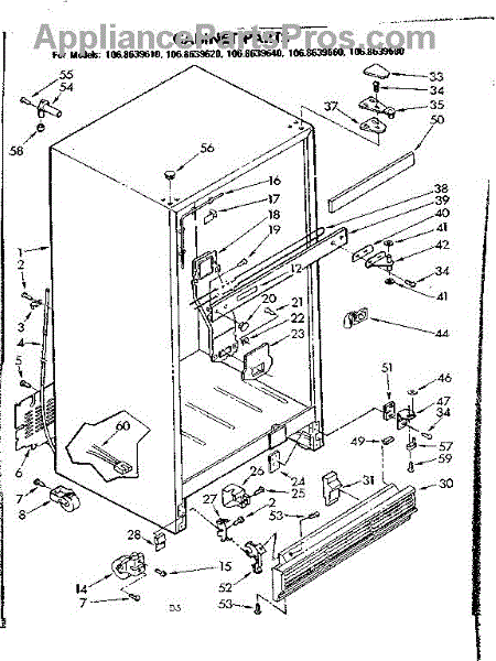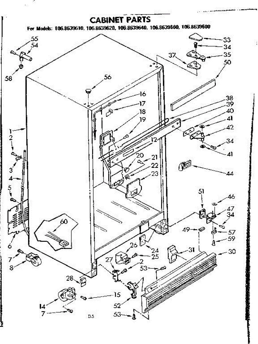 Parts for Kenmore 106.8639610 (1068639610, 106 8639610): Cabinet Parts