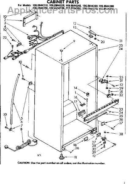 Parts for Kenmore 106.8644320 (1068644320, 106 8644320): Cabinet Parts