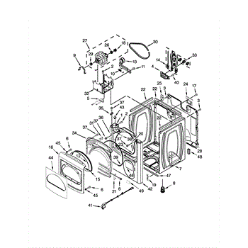 This motor/drum pulley assembly transfers motor torque to the dryer drum so the drum turns smoothly during operation. Replacing a worn pulley restores proper belt tracking and reduces noise and slipping. What it does: