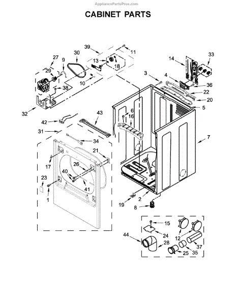 This exhaust pipe vents hot, moist air from the dryer to the home venting system, helping the appliance dry clothes efficiently and reduce indoor humidity. Replace a damaged or restricted pipe to restore proper airflow. What it does: