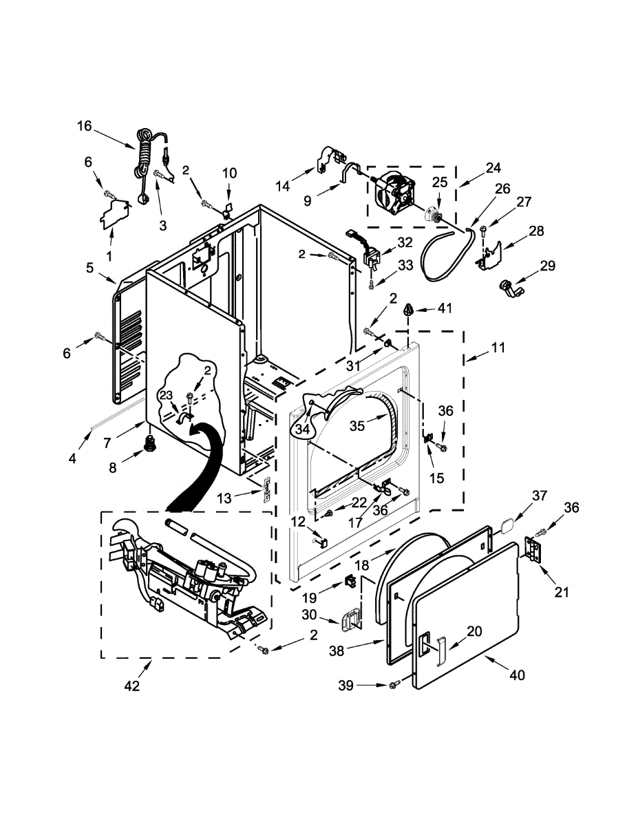 Causes of a bad door catch can include wear and tear of the plastic tang and spring from years of repeated opening and closing of the dryer door. Over time, this limits its ability to fully engage and latch securely.