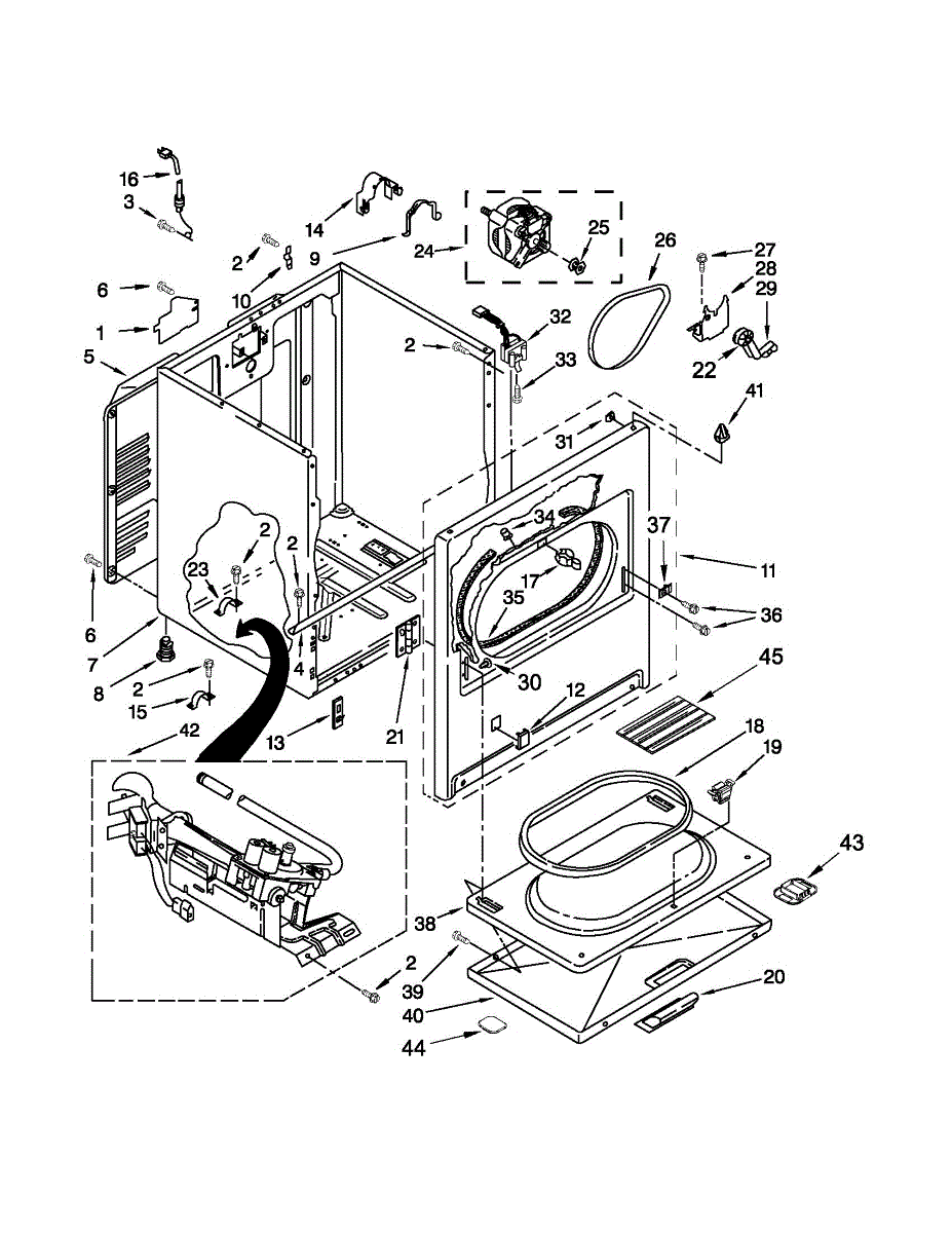 Fits all Whirlpool-made dryers (Whirlpool, Kenmore with prefix 110, Roper, KitchenAid, and Estate). Matching belt 341241 and rear support rollers 349241T. Whirlpool dryer repair manual 677818L.