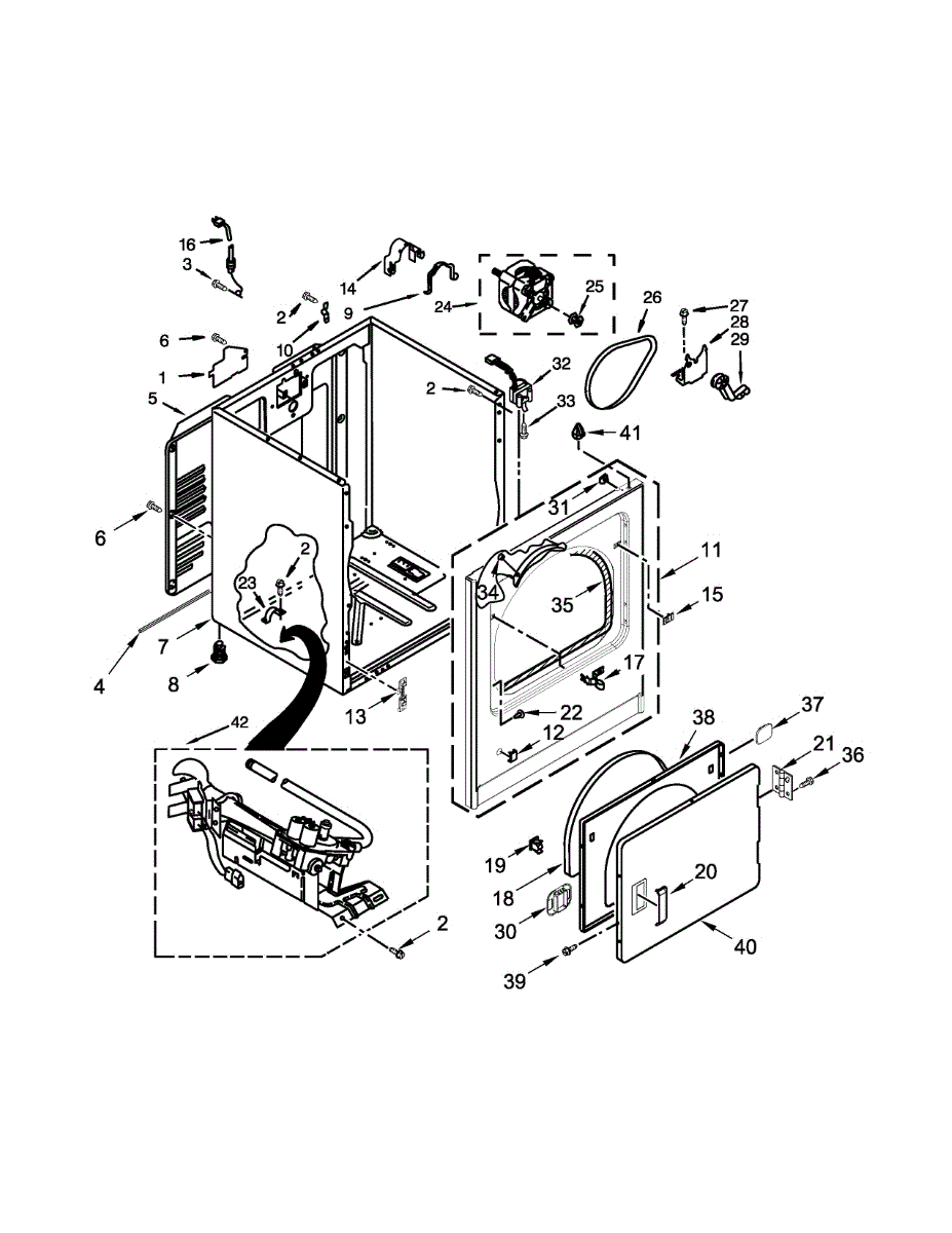 Fits all Whirlpool-made dryers (Whirlpool, Kenmore with prefix 110, Roper, KitchenAid, and Estate). Matching belt 341241 and rear support rollers 349241T. Whirlpool dryer repair manual 677818L.