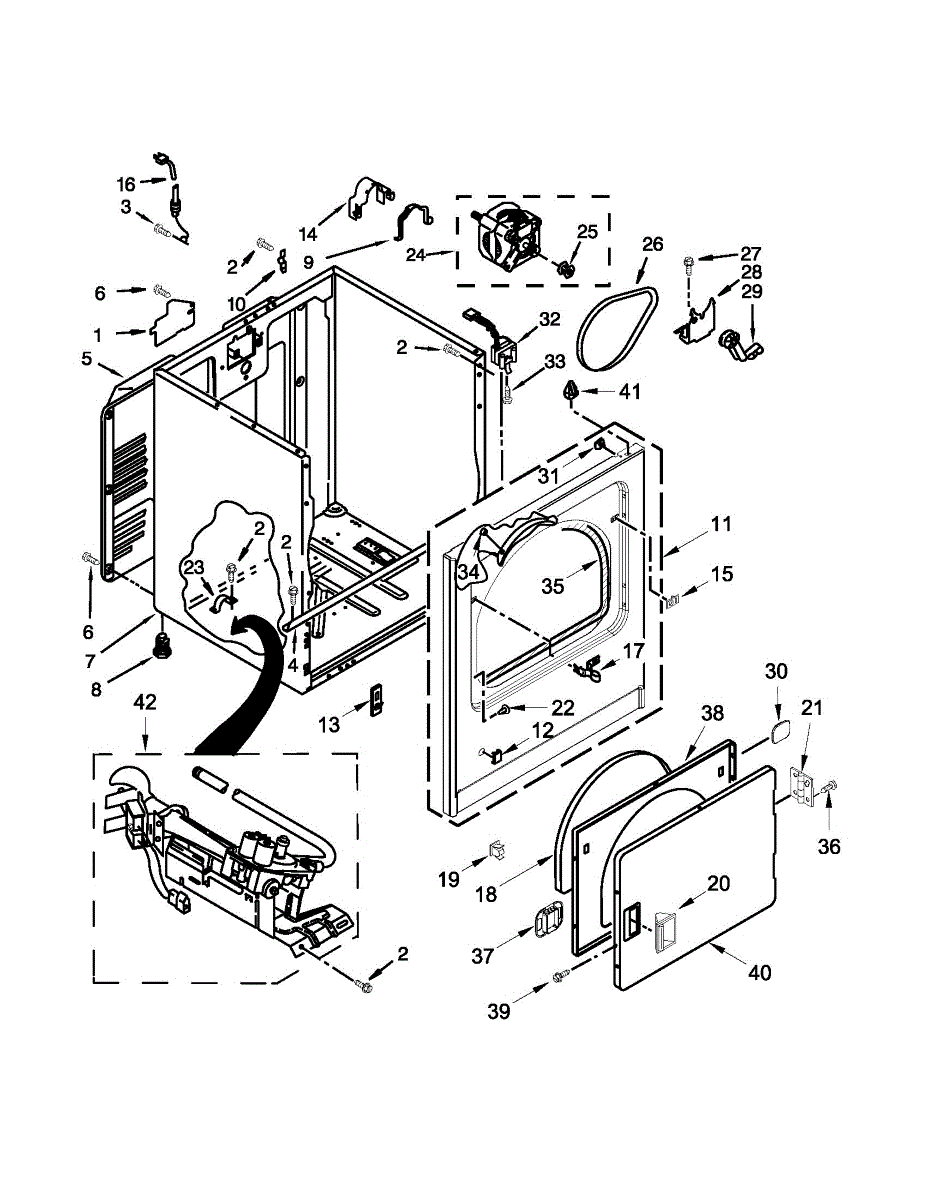 Fits all Whirlpool-made dryers (Whirlpool, Kenmore with prefix 110, Roper, KitchenAid, and Estate). Matching belt 341241 and rear support rollers 349241T. Whirlpool dryer repair manual 677818L.