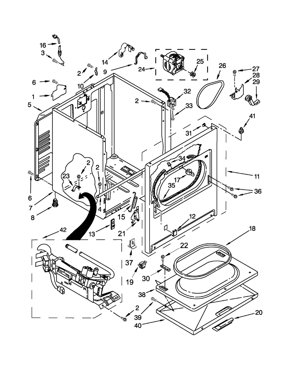 • The dryer failing to start or operate with the door closed