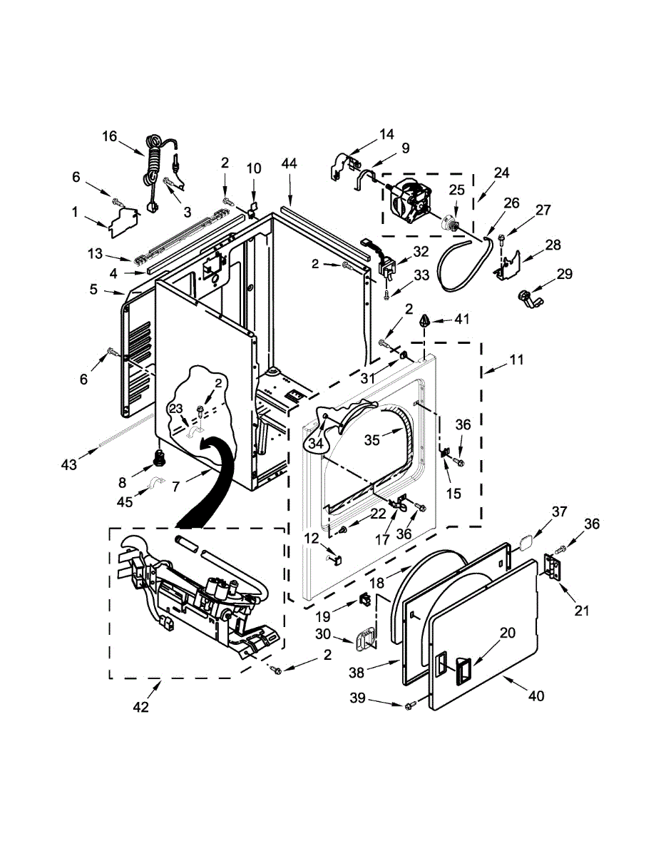 Causes of a bad door catch can include wear and tear of the plastic tang and spring from years of repeated opening and closing of the dryer door. Over time, this limits its ability to fully engage and latch securely.